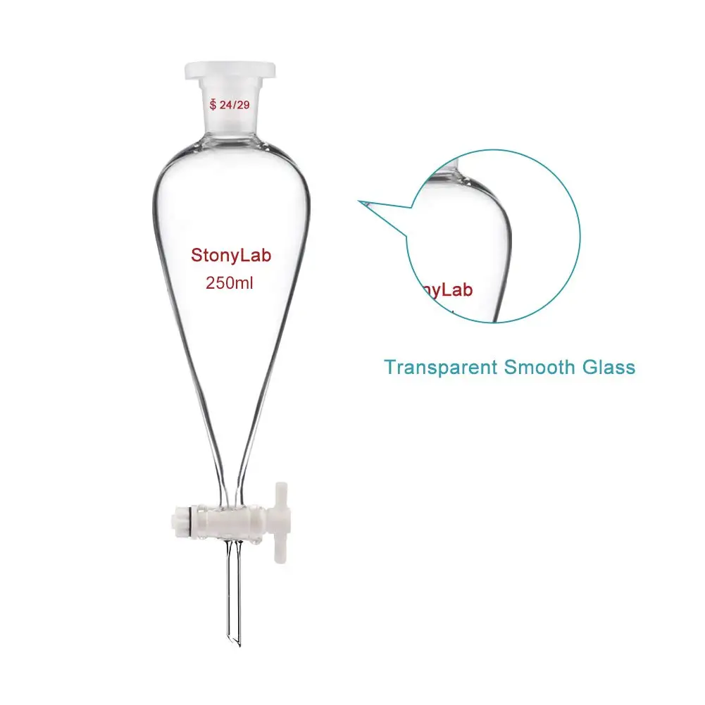 Stonylab Borosilicate Glass 500ml Heavy Wall Conical Separatory Funnel With 24 29 Joints And Ptfe Stopcock 500ml